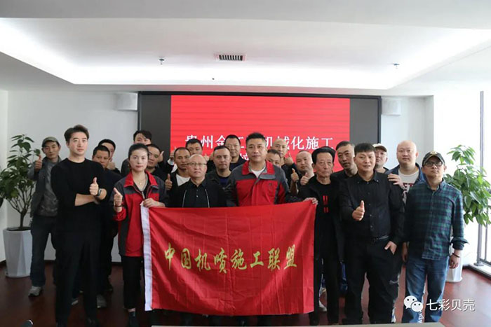 (授牌合影) 結(jié)束語 唯有把品質(zhì)和服務(wù)放在首位,才能獲得廣大消費(fèi)者的青睞。自創(chuàng)立以來,七彩貝殼堅(jiān)守質(zhì)量和服務(wù)生命線,對產(chǎn)品和服務(wù)精益求精,匠心雕琢,致力于為消費(fèi)者打造最優(yōu)質(zhì)的產(chǎn)品、提供最專業(yè)的服務(wù)。“兩工三合”機(jī)械化施工培訓(xùn)是中國機(jī)噴施工聯(lián)盟和七彩貝殼集團(tuán)在推行機(jī)械化施工道路上的一個重要舉措,也是推動機(jī)噴施工轉(zhuǎn)型升級的關(guān)鍵。