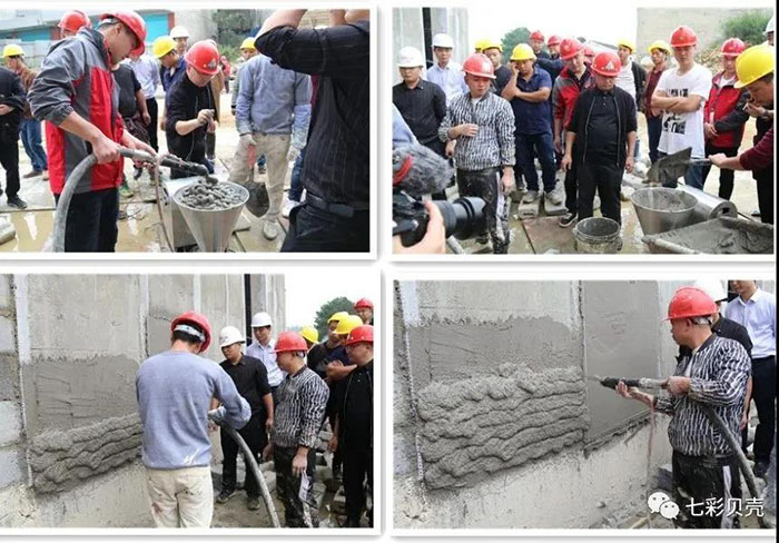 理論技術(shù)培訓(xùn) 10月12日,“兩工三合”機(jī)械化施工培訓(xùn)在貴陽市圓滿舉行。此次培訓(xùn)由中國機(jī)噴施工聯(lián)盟、七彩貝殼香港集團(tuán)有限公司、貴州金江匯節(jié)能材料有限公司聯(lián)合舉辦。本次培訓(xùn)主要從理論和實(shí)操兩個方面開展,意在通過專業(yè)化的培訓(xùn),讓企業(yè)和一線工人加快施工模式的轉(zhuǎn)型。